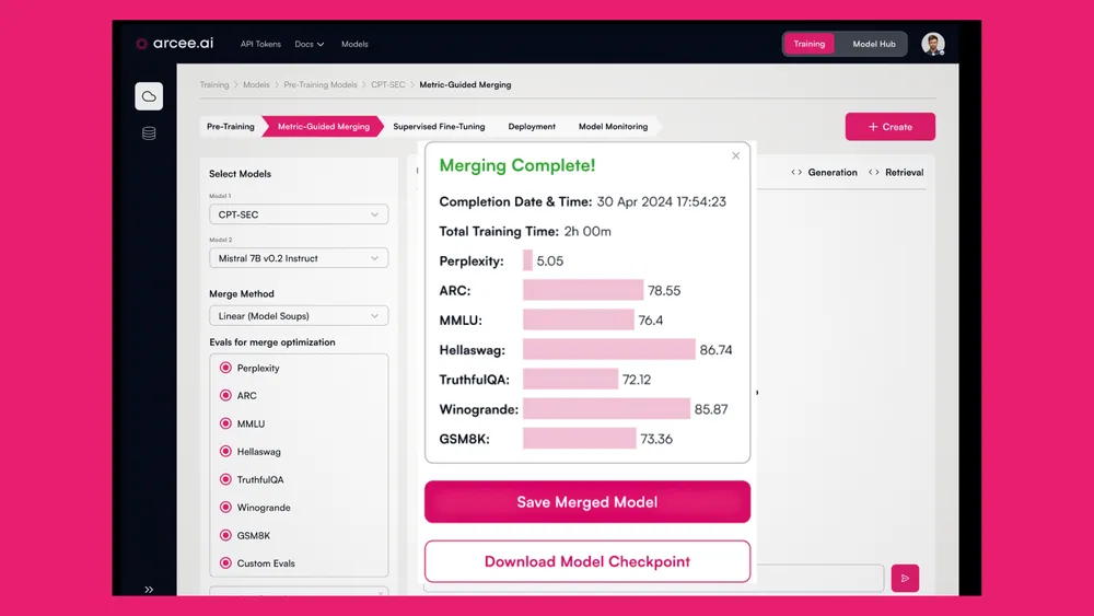 Model merging itself seems somewhat magical, and becomes even more so when it’s paired with the other training steps we offer in the platform (CPT, SFT, DPO).