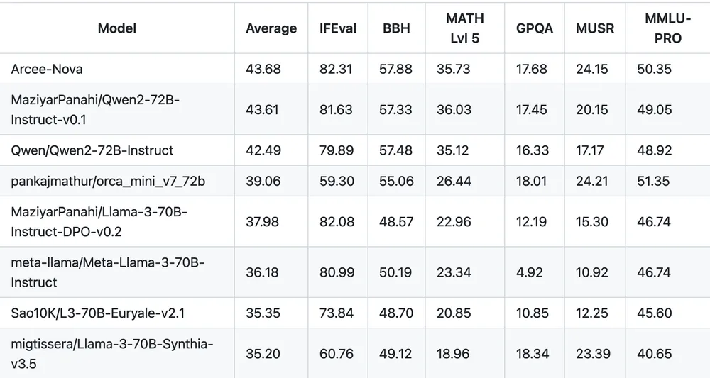 What a week here at Arcee AI. On the heels of Arcee-Scribe yesterday, today we bring you Arcee-Nova – our highest-performing open source model... Evaluated on the same stack as the OpenLLM Leaderboard 2.0, making it the top-performing open source model tested on that stack. Its performance approaches that of