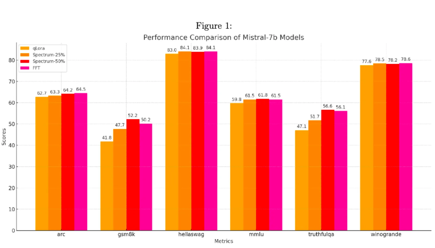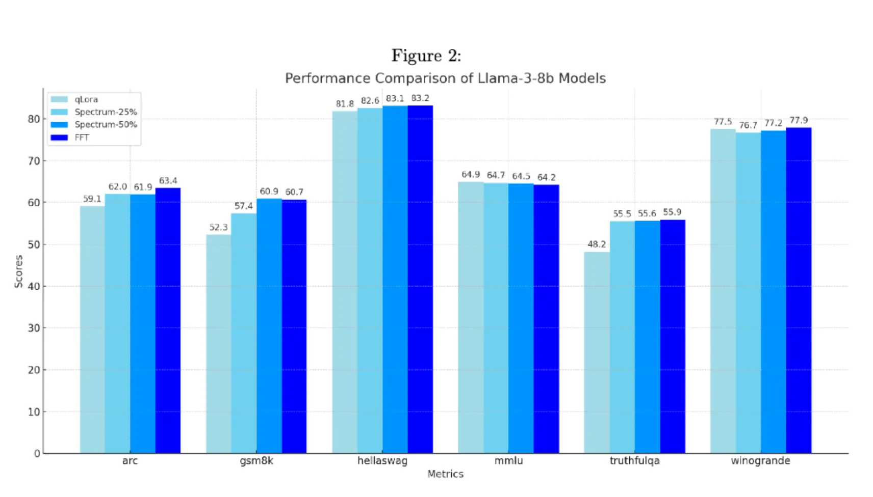In their paper, the authors behind Spectrum (including Lucas Atkins and Fernando Fernandes Neto from Arcee) compared Spectrum against QLoRA and full fine-tuning techniques. We have found that these findings extend to Continual Pre-Training (CPT).